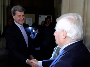 Tras llegar Cayetano, lo ha hecho su hermano Carlos, el Duque de Alba y le ha estrechado la mano... pero sin embargo no ha querido posar con él ante las cámaras que les reclamaban para inmortalizar el momento.