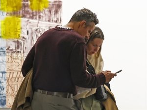 Sin dejar de compartir confidencias mientras consultaban en sus teléfonos algunas de las obras expuestas, la pareja se mostró de lo más compenetrada, luciendo looks coordinados y de máxima tendencia, ambos con pantalones tipo bombacho en color caqui y abrigos de paño en tonos cámel, que Joaquín ha combinado con jersey en burdeos, y Alexia con uno de cuello cisne en beige, y botas altas de tacón sensato en negro.