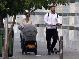 Mientras la influencer empujaba el carrito de su hija, el fisioterapeuta lo agarraba y la miraba orgulloso. Además, aprovecharon el paseo para hablar de sus temas más personales y pararse con conocidos.