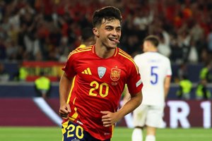 España: Unai Simón; Porro, Cubarsí, Le Normand, Cucurella; Zubimendi, Pedri; Oyarzabal, Merino, Álex Baena; y Ferran Torres.