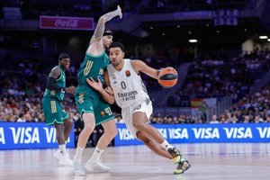 El paso por vestuarios no cambió la cara de los locales en defensa y en solo dos minutos, la diferencia había pasado de 14 a 19 puntos. Esa desventaja sí que hizo espabilar al Real Madrid, que mejoró su defensa, robó más balones y al contragolpe se mostró más eficaz, también ayudado por el rebote ofensivo. El público del Movistar Arena, acallado los primeros 20 minutos, también se enchufó y convirtió el pabellón en una caldera.