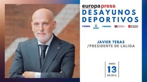 Este foro inaugura la decimoctava temporada de los 'Desayunos Deportivos' de Europa Press. En la anterior intervinieron el propio Javier Tebas; su homólogo de la Real Federación Española de Fútbol (RFEF), Rafael Louzán; y el CEO de World Rugby, Alan Gilpin, y el presidente de la Real Federación Española de Rugby (RFER), Juan Carlos Martín 'Hansen'.